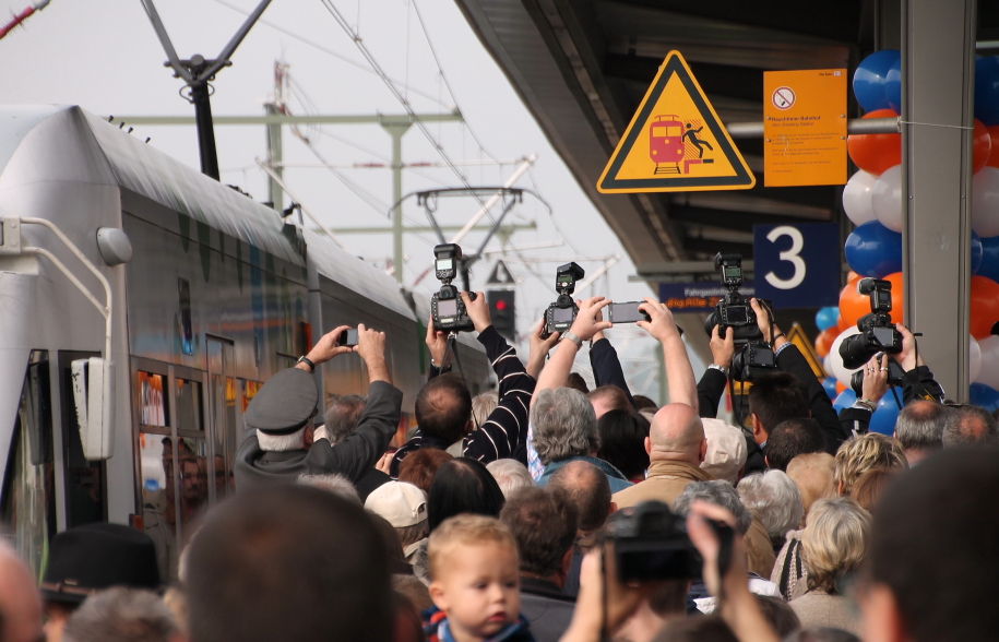 Saarbahn fährt am 5. Oktober 2014 in Lebach ein